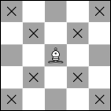 Each kind of chess piece moves in a distinct way as explained in the list below, and Figure 1 gives an example using an X to show each square that a chess piece can move to.