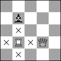 Although the king may be one of the weakest pieces on the board, it is also the most important. A king cannot be captured directly by another piece but it can be threatened. When the king is threatened, or checked, it means that on the next turn, the opposing side would be able to capture the king. Putting a king in check forces the checked side to defend their king by moving the king out of harm's way, blocking the threat with another piece, or capturing the threatening piece. If the checked player has no valid move that they can make to protect the king, then the king is in fact checkmated, and that player has lost the game. Also note that a player may never put their own king in check. Figure 3 shows the difference between a check and checkmate. In image (a), the imminent capture of the white king can still be avoided by either moving the king out of the way or by capturing the black queen. Image (b) shows an example of checkmate, where no valid moves exist for the white side that would eliminate the threat to the king.