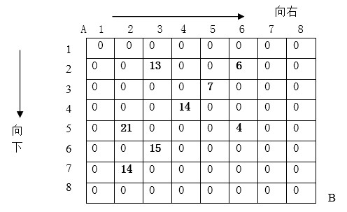 某人从图的左上角的A 点出发,可以向下行走,也可以向右走,直到到达右下角的B点。在走过的路上,他可以取走方格中的数(取走后的方格中将变为数字0)。