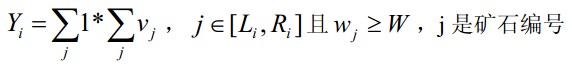 3. 对于一个区间[Li, Ri],计算矿石在这个区间上的检验值Yi:
