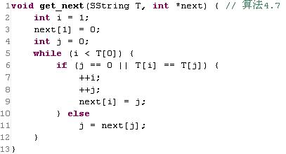 在KMP算法中,使用到了一个next数组。这个数组就是在比较失配时母串指针不必回溯,而子串指针移动相应位置即可。我们给出书中next数组的算式表示以及算法,请你实现之。