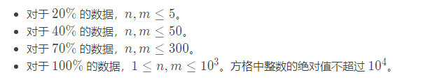 接下来 n 行每行 m 个整数,依次代表每个方格中的整数。