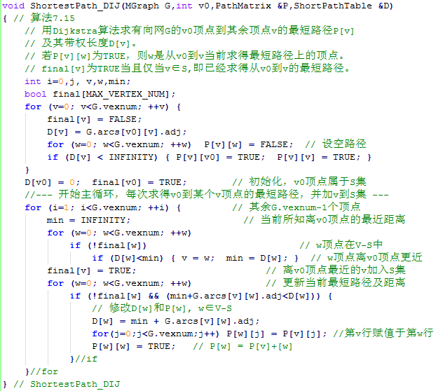 在带权有向图G中,给定一个源点v,求从v到G中的其余各顶点的最短路径问题,叫做单源点的最短路径问题。