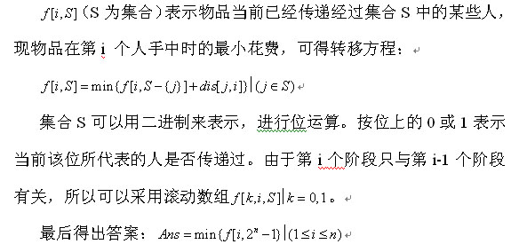(1)开始时物品可以在任意一人手上,他可把物品传递给其他人中的任意一位;