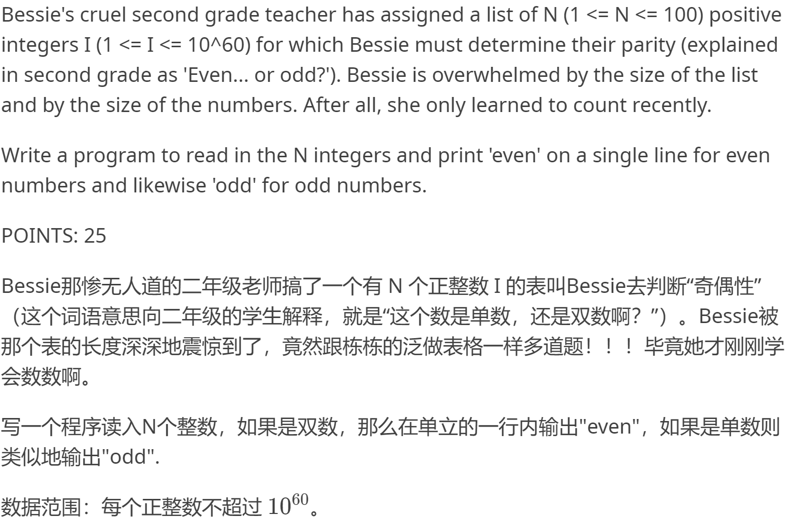 4727: P2955 [USACO09OCT] Even? Odd? G(入门)