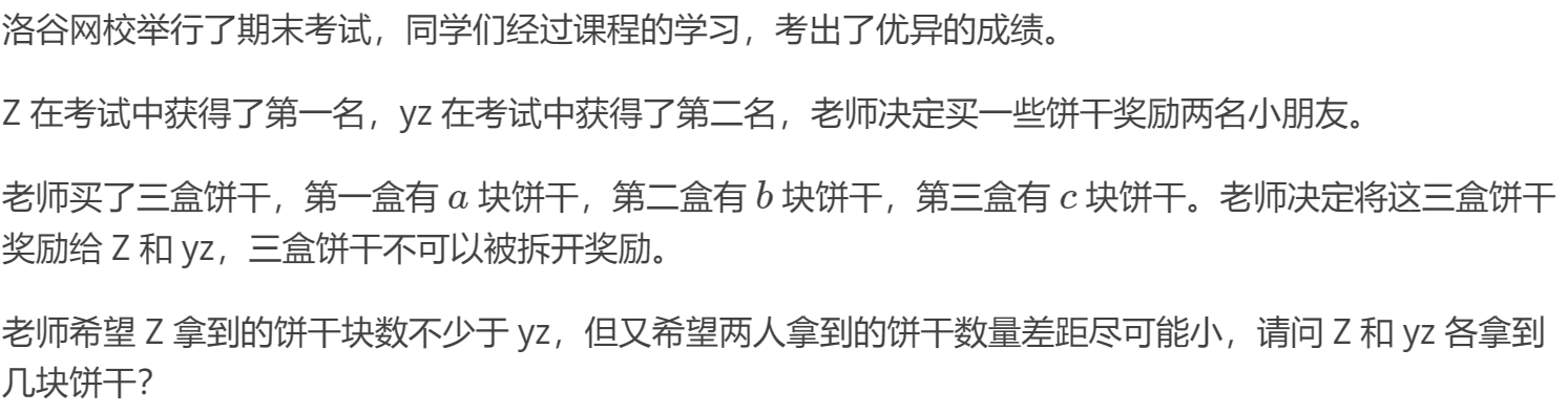 5242: B3914 [语言月赛 202401] 分饼干 I(入门)