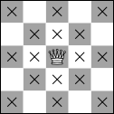 Each kind of chess piece moves in a distinct way as explained in the list below, and Figure 1 gives an example using an X to show each square that a chess piece can move to.