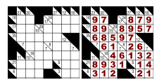 左边为一个Kakuro 游戏,右边为这个游戏的唯一解。