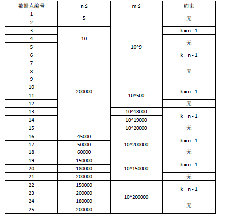 0 ≤ k ≤ n ≤ 200000, 1 ≤ m ≤ 10^200000。