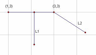 设某一房子的两端点分别为(1,3),(3,3)。若水井的横坐标1〈=x〈=3, 则水井到房子的距离为 abs(水井纵坐标-3),即图中L1,否则(x〈 1 或 x 〉3),距离为min{水井到左端点的距离,水井到右端点的距离},即图中L2。换句话说,让村民们来打水所走的距离和最短。