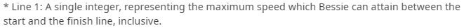 贝茜从山顶滑雪到山脚,山顶到山脚距离是L(2<L<10^9)米.贝茜在起点的速度是1米每 秒,但是他的速度是可以改变的,在每一米的速度可以是前一米的速度加1、减1,或者等于前一米 的速度.在滑行的过程中,贝茜会遇到N<=100000)个转弯处,第i个转弯处位于距离出发 Ti米处,为了安全,贝茜到达第i个转弯处的速度不能超过Si(1<Si<10^9)米 每秒.当然贝茜到达终点时的速度没有最大限制.请你计算贝茜在滑雪过程中最大的速度可以是多 少?