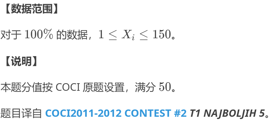4929: P7614 [COCI2011-2012#2] NAJBOLJIH 5(入门)