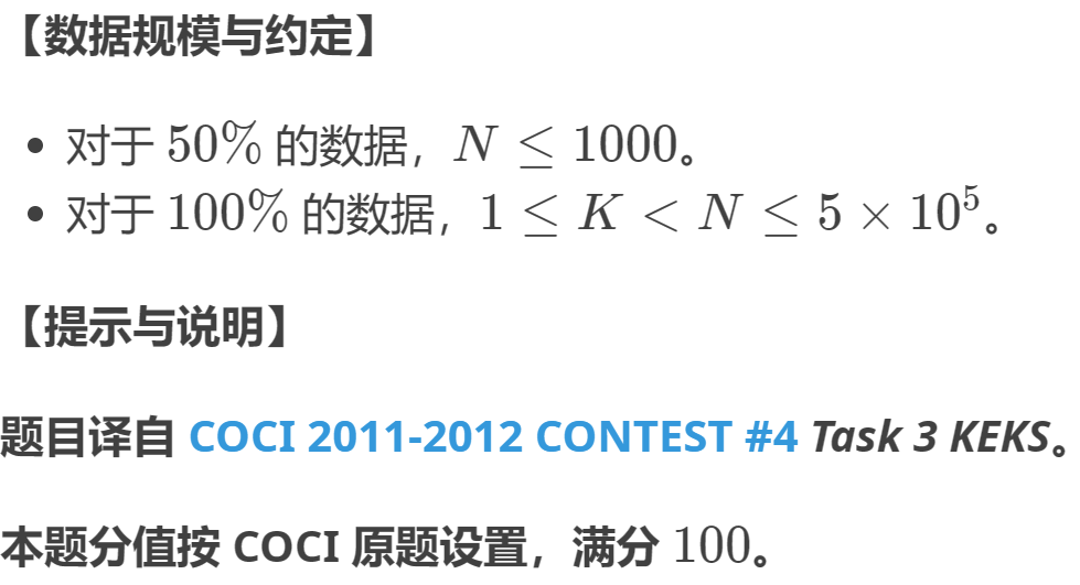 5007: P8082 [COCI2011-2012#4] KEKS(普及-)