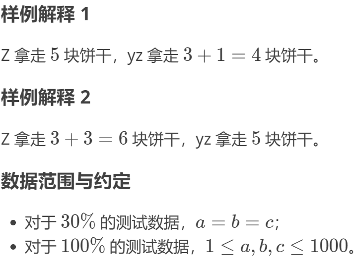 5242: B3914 [语言月赛 202401] 分饼干 I(入门)
